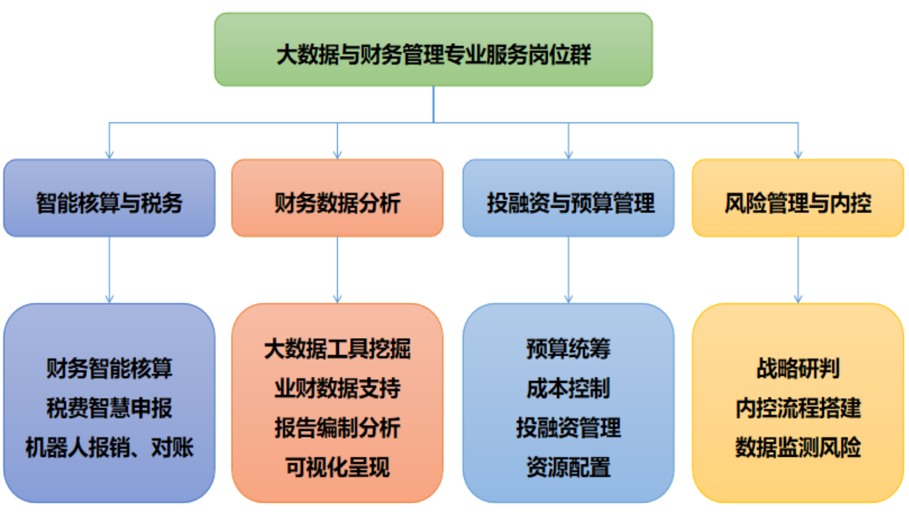 财务大数据分析、预算管理、投融资管理、成本管理、税务管理、风险管理、财务机器人应用…… |